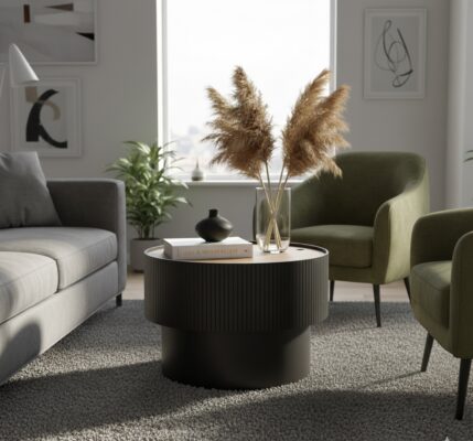 Table basse « Enola » Placage frêne, noir , D.55 cm